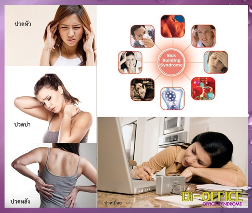 โรคออฟฟิศซินโดรม คือภาวะที่มักเกิดกับคนทำงานตามออฟฟิศ หรือแม้แต่คนที่ทำงานอยู่กับบ้านก็ตาม โดยเกิดจากการทำงานหรือใช้ชีวิต นั่ง เดินเคลื่อนไหวร่างกายในท่าทางอิริยาบถที่ไม่ ถูกลักษณะ ผิดท่าที่เหมาะที่ควร บ่อยครั้งเป็นเวลานานๆ โดยอยู่ในท่าเดิมหลายชั่วโมง ซึ่งท่าทางลักษณะเหล่านี้จะทำให้มี อาการปวดเมื่อยล้าตรงกล้ามเนื้อ จะรู้สึกเกร็งเหมือนกล้ามเนื้อถูกดึงรั้ง ที่น่ากลัว คือนานวันเข้าจากอาการแค่ปวดกล้ามเนื้อ อาจกลายเป็นกล้ามเนื้ออักเสบเรื้อรังปวดเจ็บตามอวัยวะต่างๆ ไม่ว่าจะเป็นแขนขา ข้อมือ ไหล่ หลัง ซึ่งปวดมากหรือปวดน้อยก็แล้วแต่การ สะสมของโรค
